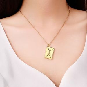 18K Vàng Cao End Thư Tình Yêu Mề Đay Thẻ Từ Valentine Quà Tặng Tin Nhắn Phong Bì Thép Không Gỉ Mặt Dây Chuyền Vòng Cổ Cho Phụ Nữ