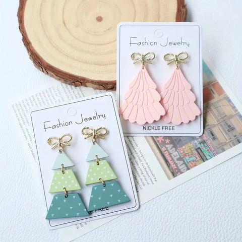 Sơn và khắc màu hồng màu xanh lá cây nối Cây giáng sinh tinh tế Acrylic Stud Bông tai cho phụ nữ 2025