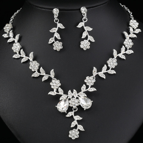 Sang Trọng 2025 Của Phụ Nữ Bạc Mạ Vòng Cổ Bông Tai Trang Sức Set Phóng Đại Rose Flower Rhinestone Cổ Điển Cho Đám Cưới Các Bên