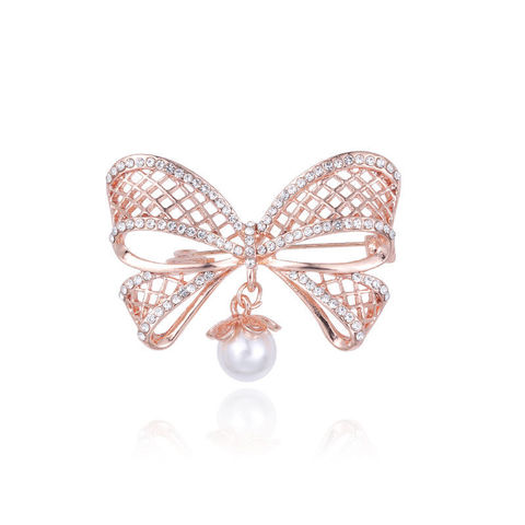 Fanyue D Hàn Quốc Bow ngọc trai Rhinestone trâm cài và pins đối với phụ nữ 2024